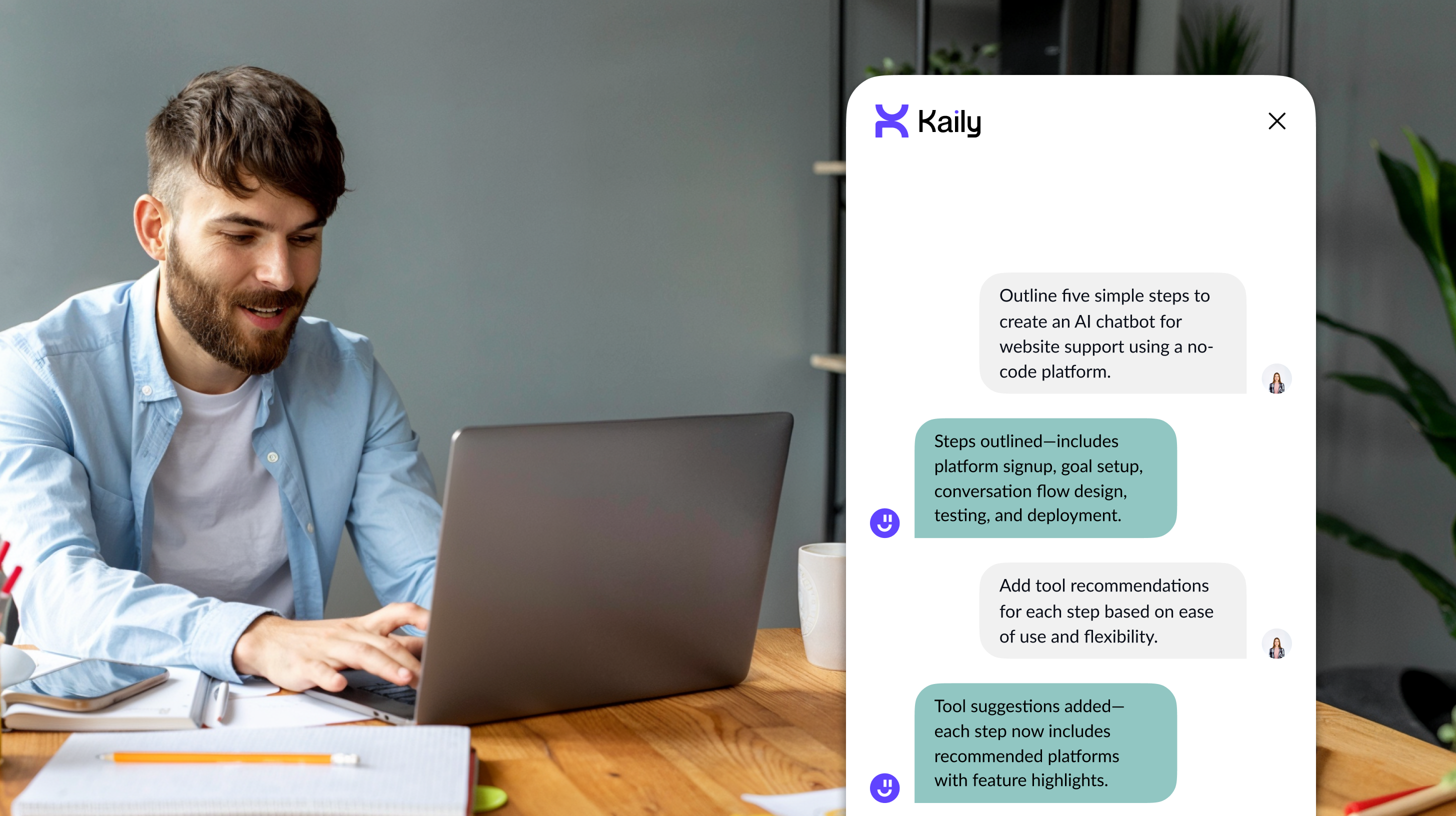 You can design, customize, and deploy a chatbot that meets your unique needs in just eight simple steps. With its intuitive interface and helpful resources, you'll be equipped to create a chatbot that engages users and streamlines interactions. Let's dive into the eight easy steps to guide you through the exciting journey of building your chatbot using Kaily.